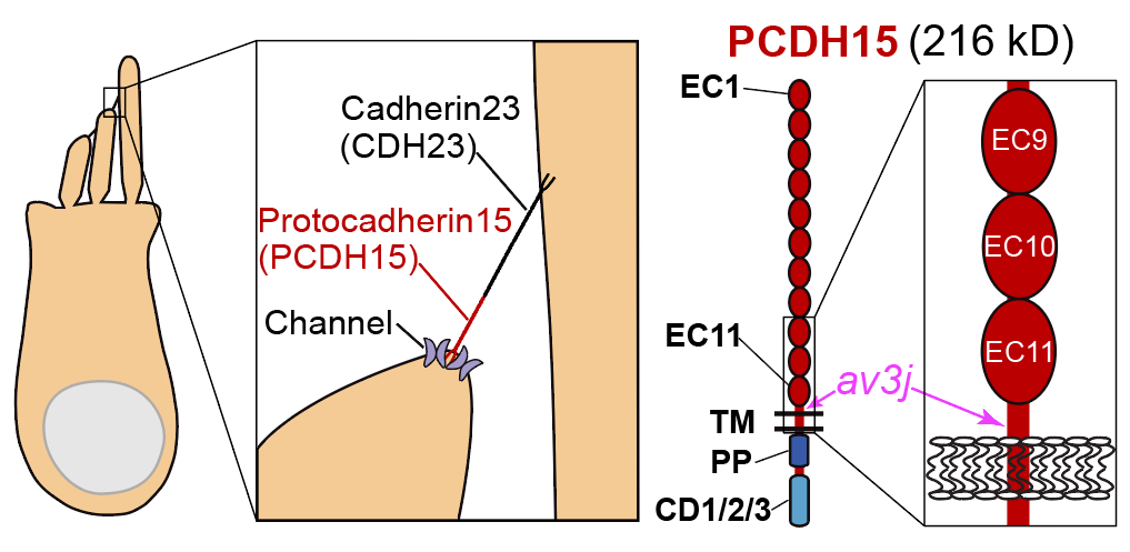 图2:PCDH15是内耳毛细胞顶链接的组分,其功能是门控机械转导通道