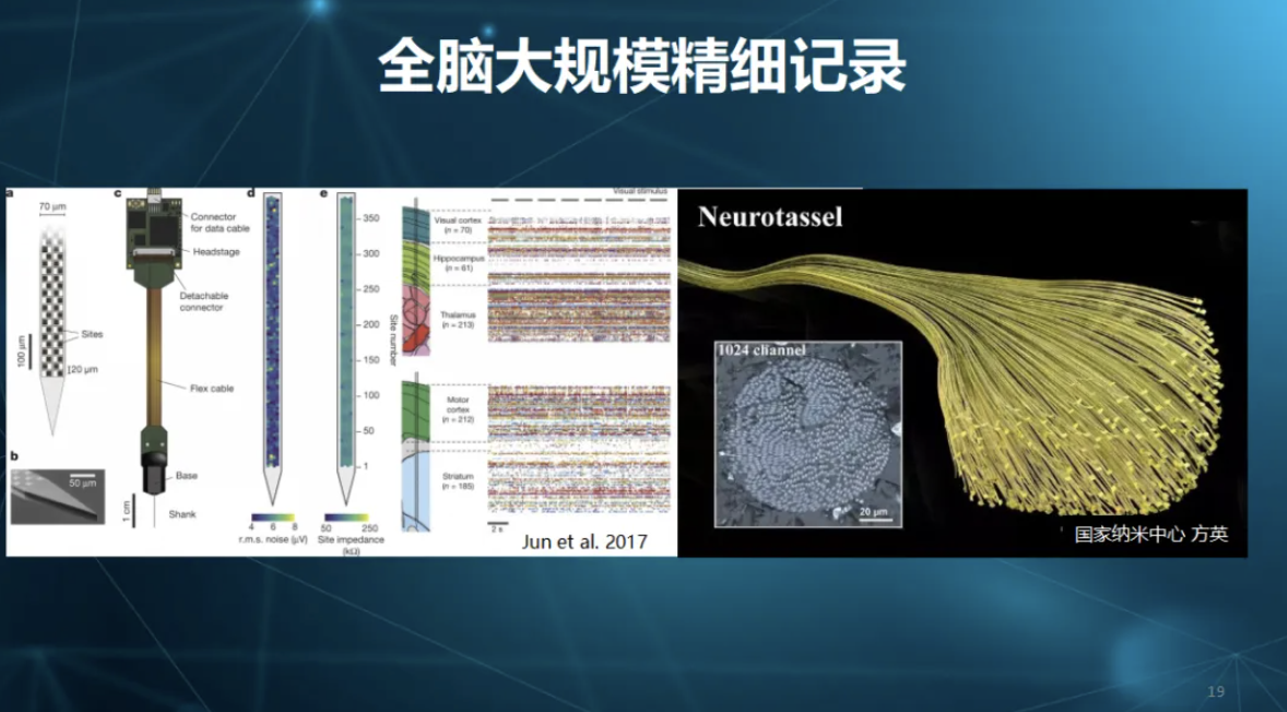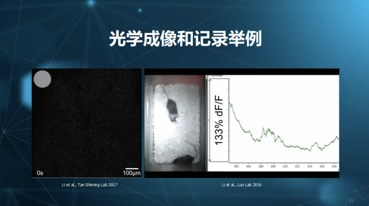 另一个新的技术是大规模光学成像技术,包括清华大学戴琼海老师,北大的程和平老师等,都开发出新型显微镜以及新型探针,这些探针允许我们通过光学手段来观察人或动物在运动过程中神经细胞的活动。