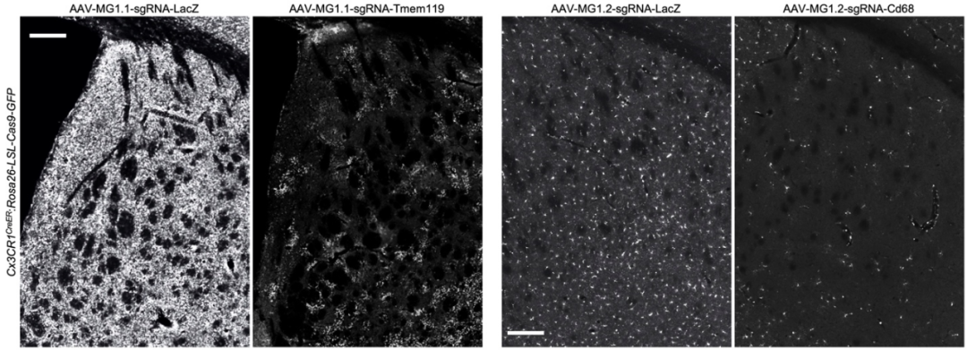 图3:AAV-MGs介导小胶质细胞在体基因敲除