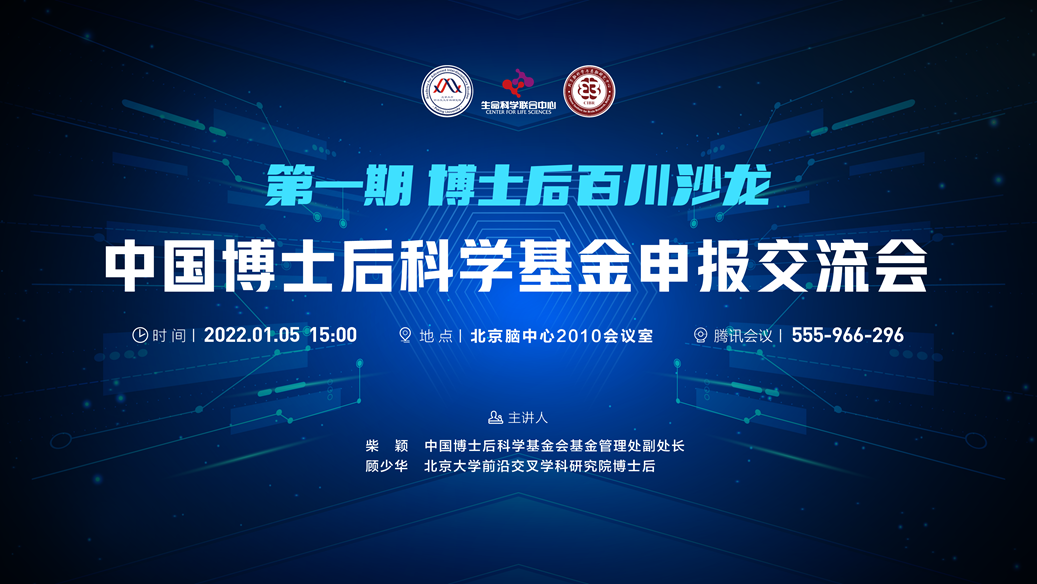 2022年1月5日下午,由北京脑科学与类脑研究中心、北京大学前沿交叉学科研究院和生命科学联合中心共同组织的博士后“百川”沙龙第一期成功举办。本期的沙龙主题为“中国博士后科学基金申报交流会”。沙龙邀请到中国博士后科学基金会基金管理处副处长柴颖和北京大学前沿交叉学科研究院“博新”博士后顾少华分别分享基金申报政策和申请经验。前沿交叉学科研究院副院长王初教授,北京脑科学与类脑研究中心科研总监毛军文以及线下线上近100名博士后参加了本次活动。沙龙由毛军文总监主持。
