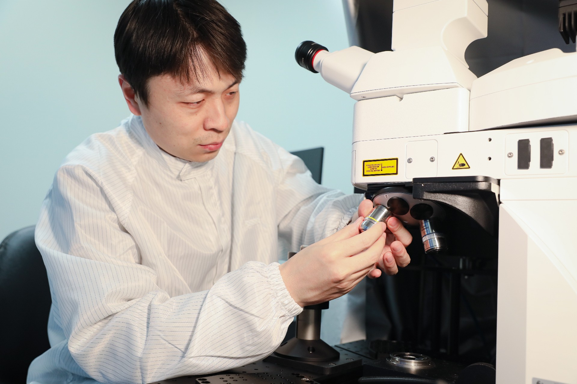郭青春为双光子激光扫描显微镜更换物镜