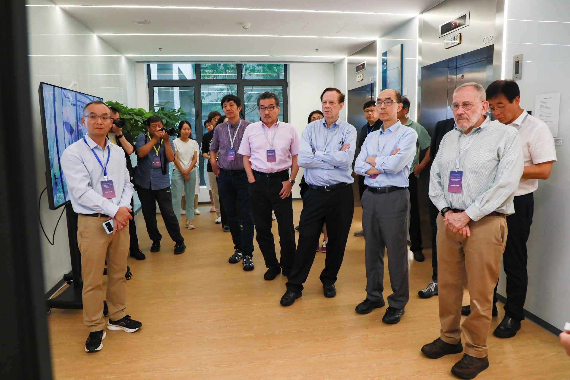 本次国际评估现场考察环节于7月31日-8月1日进行,由哈佛大学Joshua Sanes、麻省理工学院Robert Desimone、日内瓦大学Christian Luscher、日本筑波大学Masashi Yanagisawa、斯坦福大学骆利群、麻省理工学院冯国平、深圳医学科学院颜宁、中国医学科学院王辰等8位国内外顶尖科学家组成评估委员会,赴北京脑中心进行为期两天的现场评估工作,实地考察脑中心建设情况,并参与脑科学前沿学术报告会。