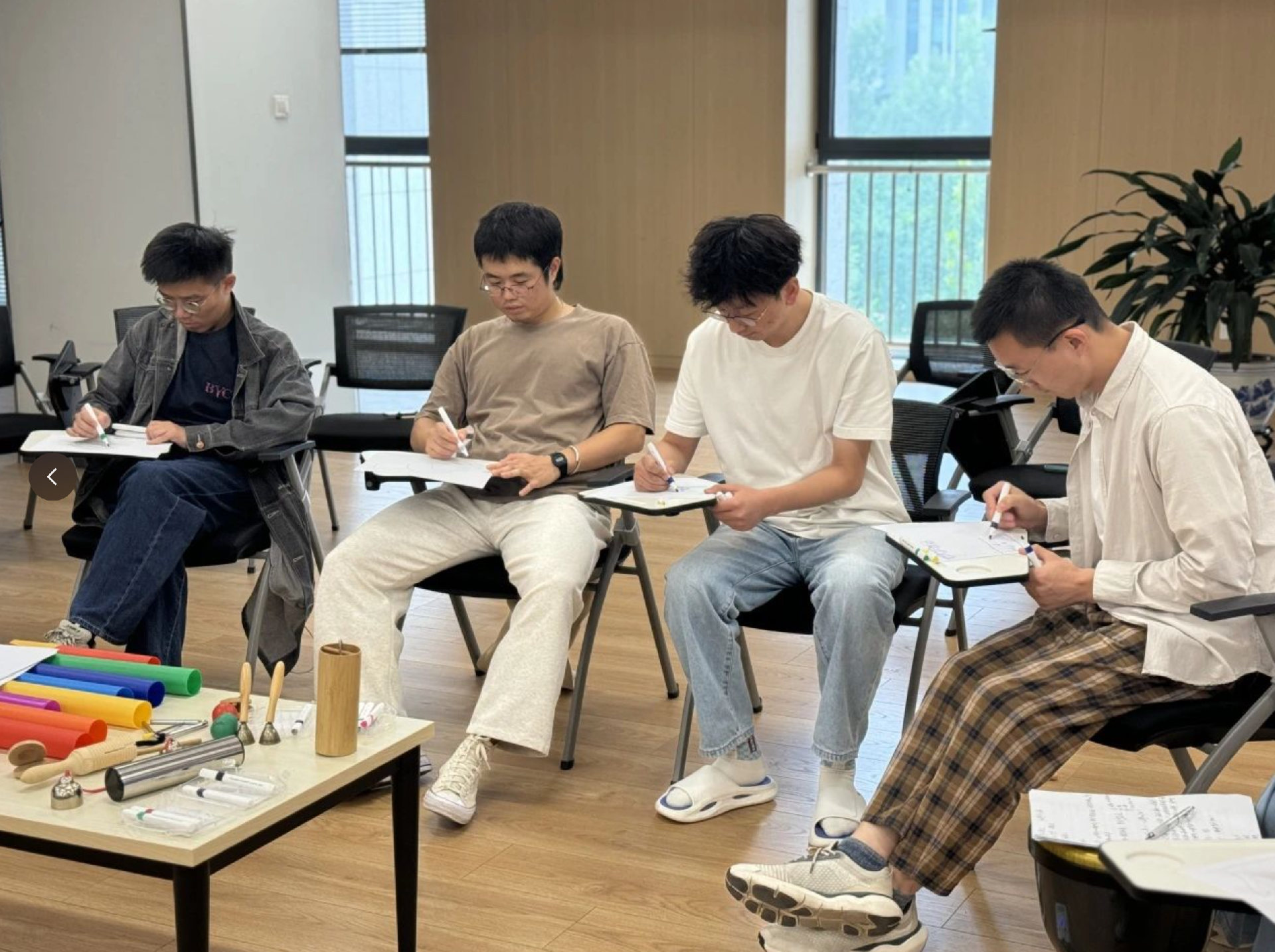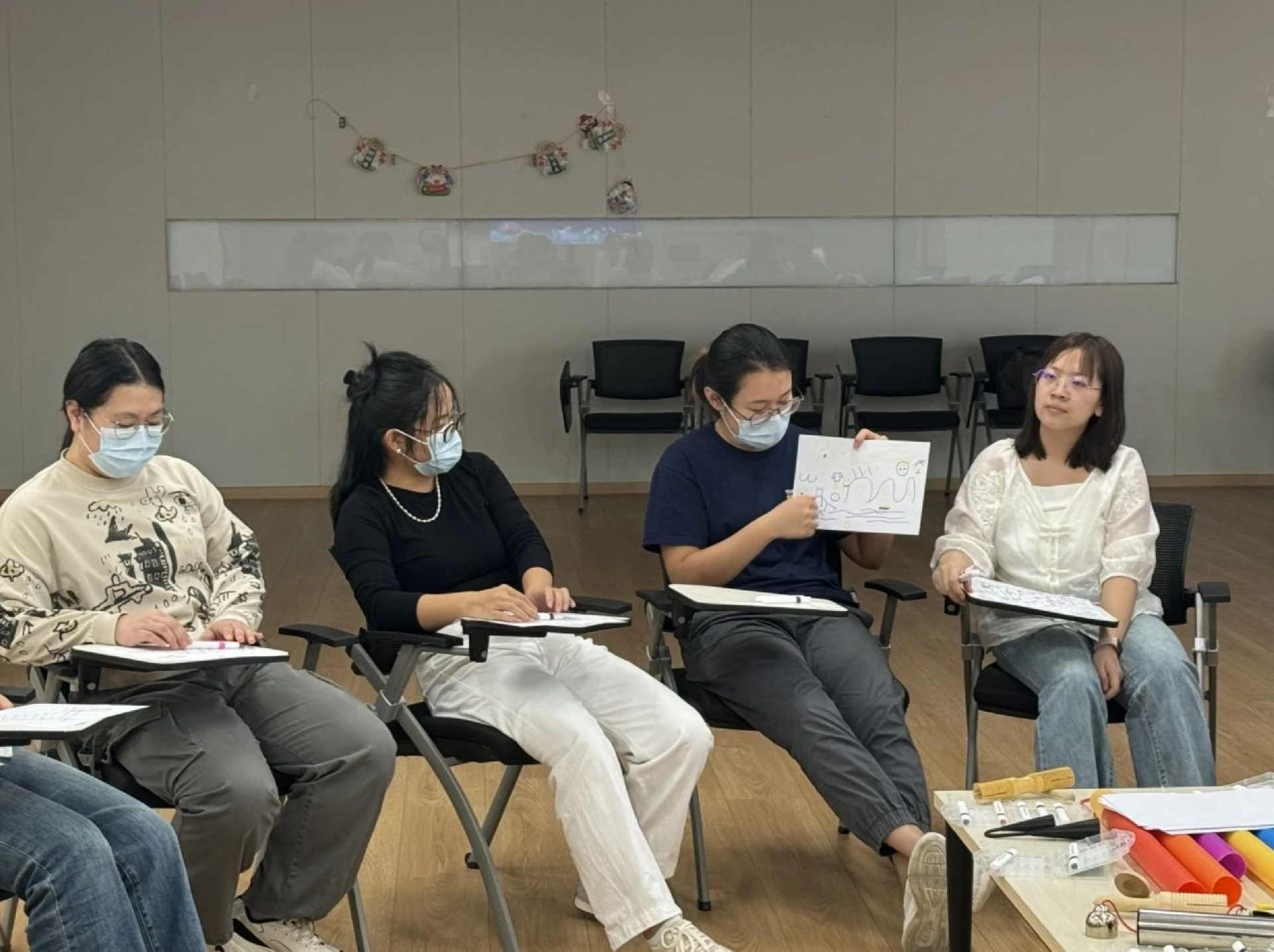 指导老师首先带领大家进行了节拍互动,大家跟随着老师,通过拍手、击掌、打响指、摆动小腿等动作,一起找到了一致的节奏,做到了“同频共振”。