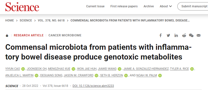 彼时的焦虑和努力,如今凝结成一篇Science论文。10月28日,曹议匀作为一作,发表了她的第一篇Science文章。这项研究第一次探究了肠道菌群的代谢产物引发结肠癌的分子机制。