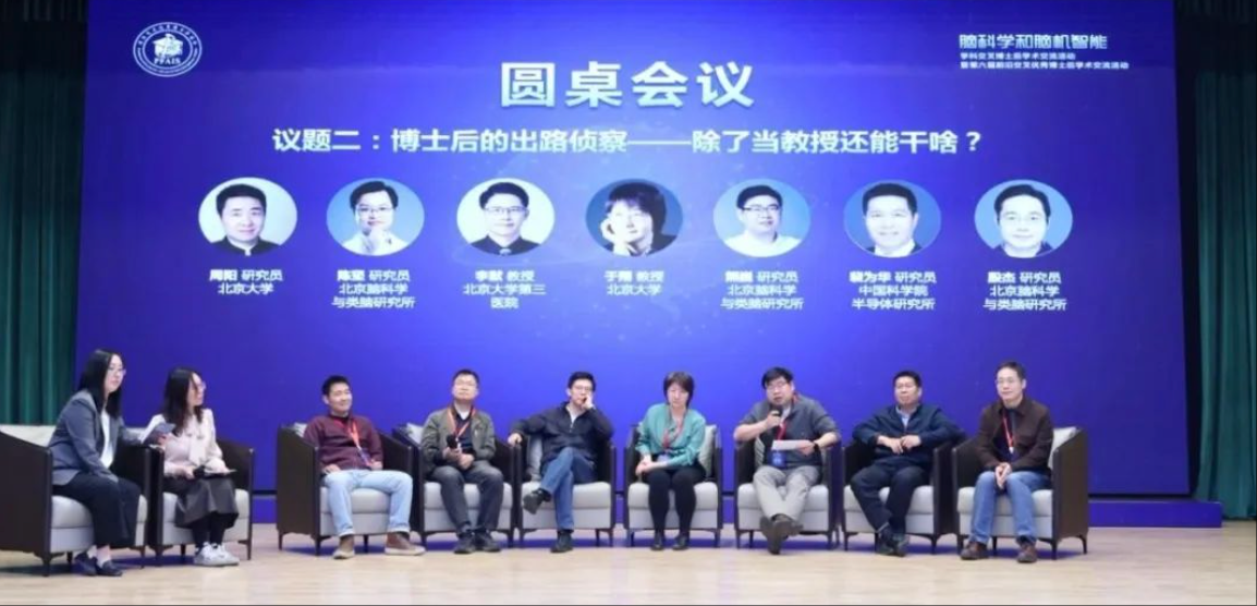 面对博士后群体普遍关注的学术竞争与职业发展问题,会议特别设置“博士后职业生涯发展圆桌会议”。北京大学于翔教授、李默教授、周阳研究员,中国科学院半导体研究所裴为华研究员,北京脑科学与类脑研究所陈坚研究员、殷杰研究员、熊巍研究员与博士后们围坐一堂,以“临床问诊”的形式,围绕“塑造个人学术品牌”“高校与企业职业路径选择”等热点议题,结合自身经历倾囊相授,为青年科研人员答疑解惑,指引职业发展方向。