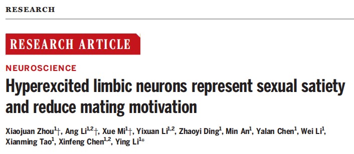 这篇题为Hyperexcited limbic neurons represent sexual satiety and reduce mating motivation的长篇科研论文,由李莹课题组完成,北京脑科学与类脑研究中心自招博士后周小娟、博士研究生李昂、技术员弭雪为该研究论文的共同第一作者,博士生导师李莹为通讯作者。