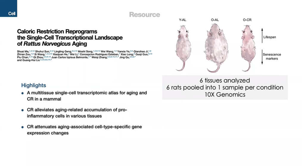 图23 Ma S, Sun S, Geng L, Song M, Wang W, Ye Y, Ji Q, Zou Z, Wang S, He X, Li W, Esteban CR, Long X, Guo G, Chan P, Zhou Q, Belmonte JCI, Zhang W, Qu J, Liu GH. Caloric Restriction Reprograms the Single-Cell Transcriptional Landscape of Rattus Norvegicus Aging. Cell. 2020 Mar 5;180(5):984-1001.e22.
