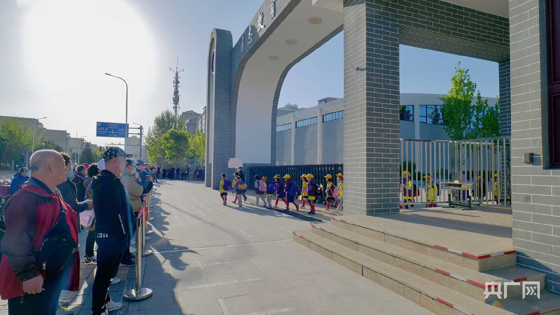 清华附小昌平学校天通苑校区,家长接孩子放学(央广网记者 朱冠安 摄)