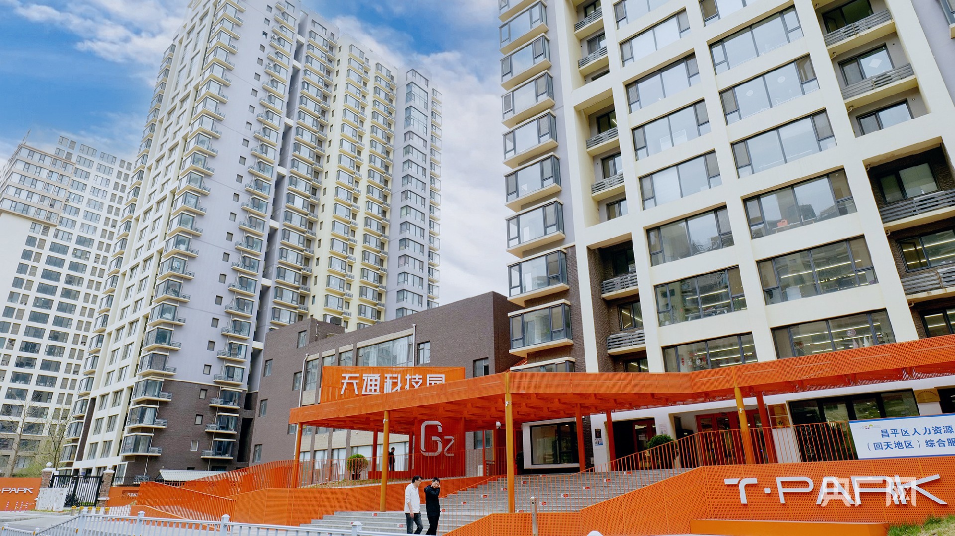 天通科技园是首轮“回天有业”行动中,探索职住平衡而诞生的第一座科技园区,位于天通苑中部核心区,“藏”在一片住宅楼之中。园区远景规划是汇聚近1000家新文娱、新消费企业,实现近1万人就近择业。2021年9月,天通科技园一期投入运营,目前已吸引80余家企业入驻。