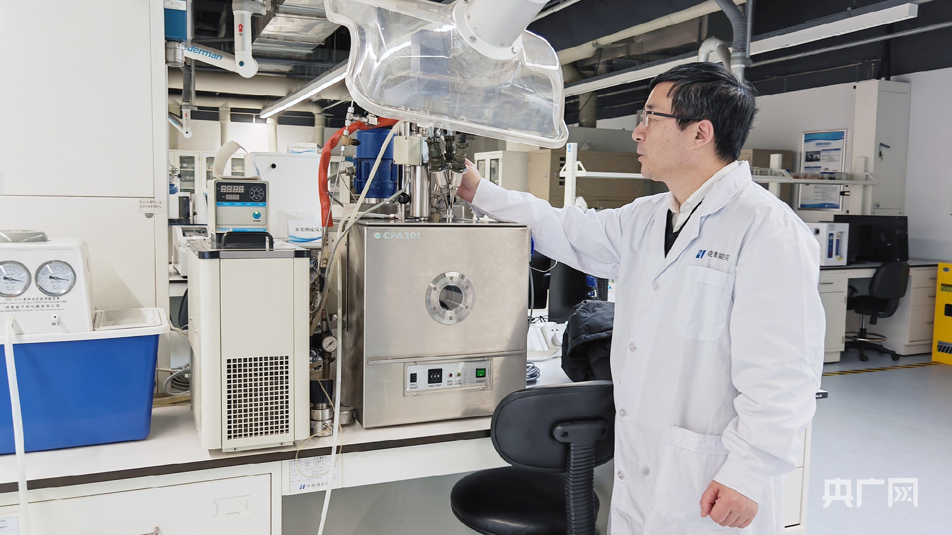 郜时旺检查实验室仪器(央广网记者 朱冠安 摄)