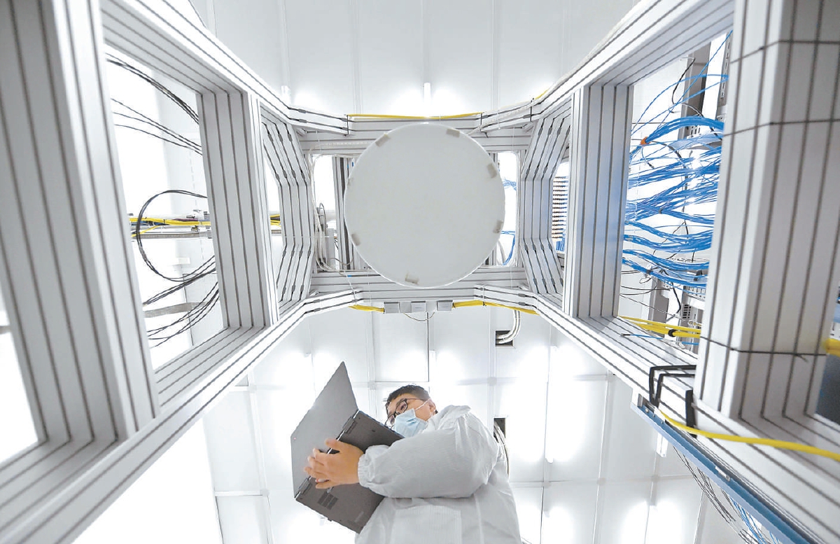 北京量子信息科学研究院,科研人员正在量子计算装置下全力攻关。本报记者 和冠欣摄