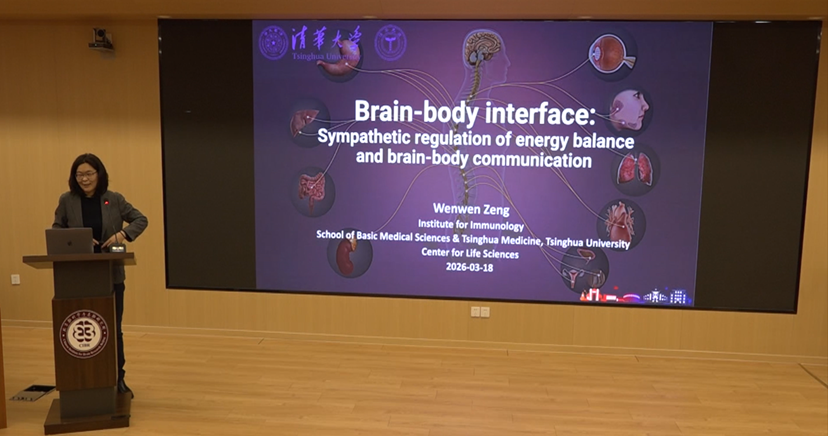 2026年3月18日,北京脑科学与类脑研究所邀请清华大学基础医学院曾文文教授,开展了一场题为“Brain-body interface: Sympathetic regulation of energy balance and brain-body communication”的学术报告,系统介绍了其实验室近年来关于交感神经系统参与脑与外周器官之间双向调控的一系列研究工作。报告由陈坚研究员主持。