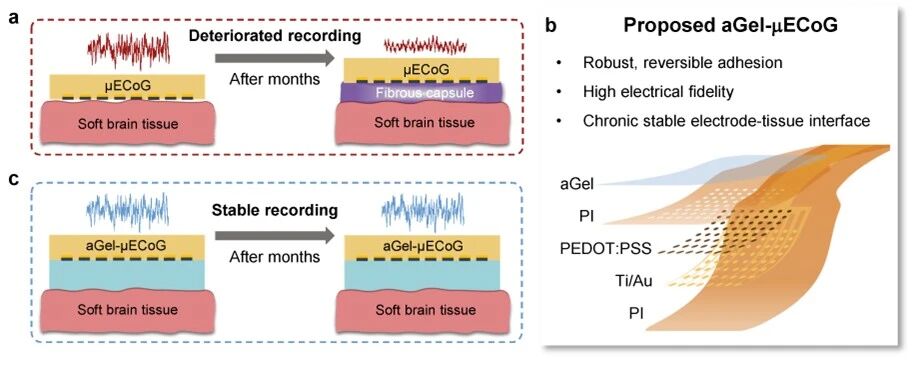 半侵入式皮层电极如何长期抵御免疫反应?仵婷/邱东团队合作开发的aGel-μECoG给出答案 | Advanced Science