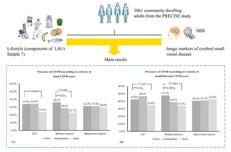 2022年8月17日,王伊龙教授团队在 STROKE 上在线发表了题为“Associations of Life’s Simple 7 With Cerebral Small Vessel Disease”的论著。