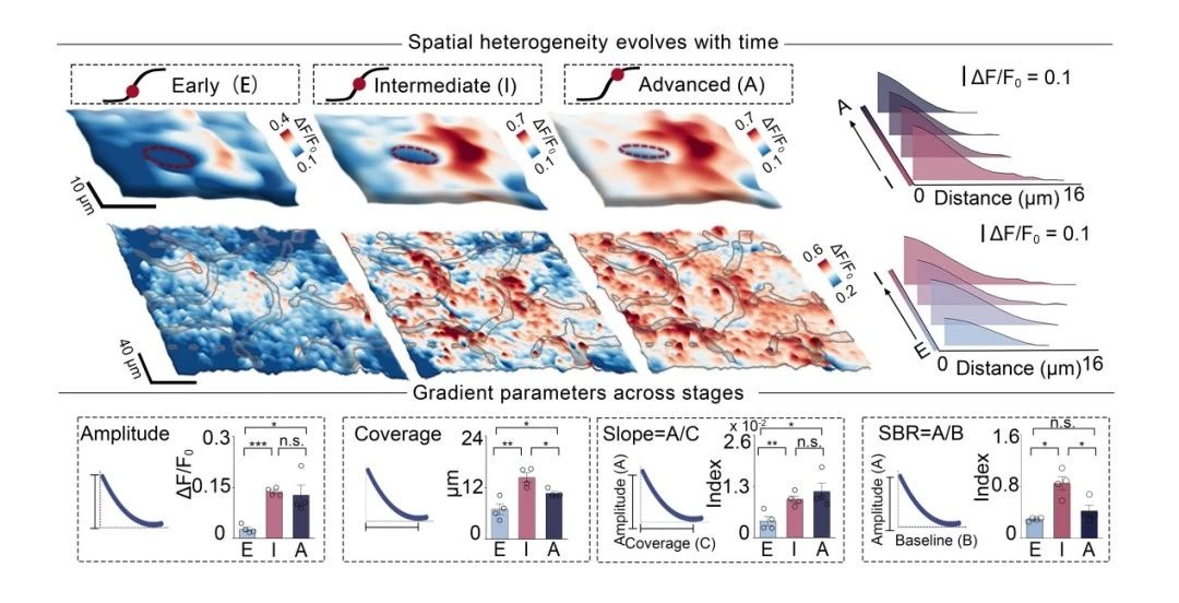 图三 大脑炎症反应中CXCL10的微米级梯度及其演化