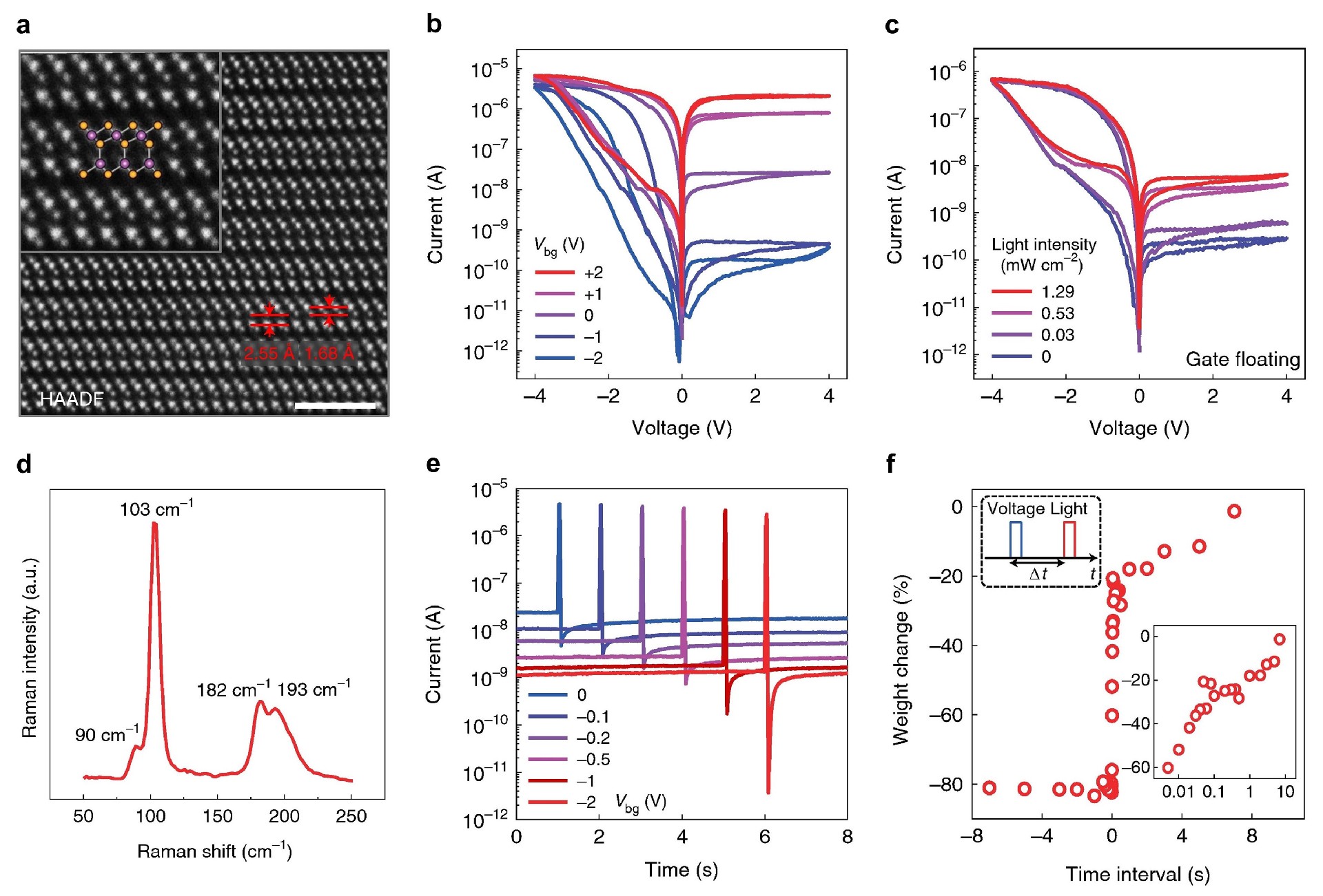 图2. 具有丰富突触特性的α-In2Se3光电忆阻器