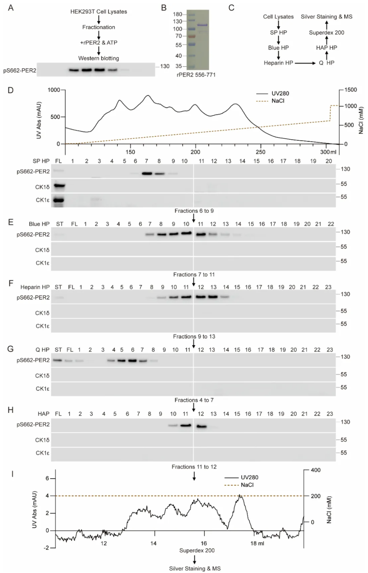 图1 从HEK293细胞中纯化磷酸化PER2 S662的活性组分