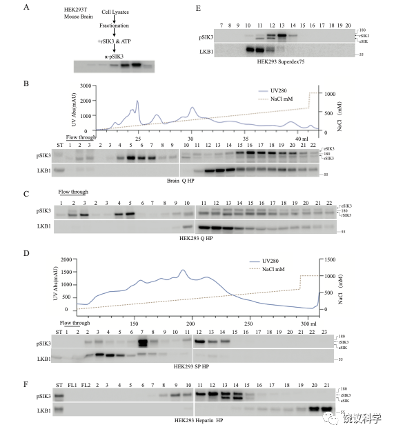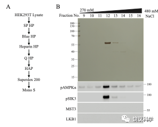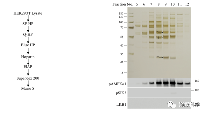 用哺乳动物体外培养细胞(人的HEK细胞)和小鼠脑,刘玉祥进行柱层析后发现,除了LKB1,还有其他磷酸化SIK3和AMPK的活性。