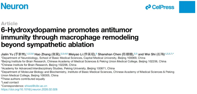 经典神经毒素竟能抗癌?北京脑所石玮团队揭示6-OHDA激活抗肿瘤免疫新机制|Neuron