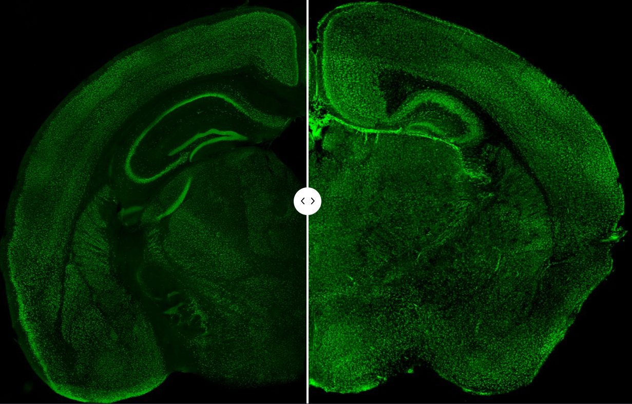 由于许多精神疾病缺乏明确的病理特征,因此在病理生理机制方面人们知之甚少。随着遗传学分析的进步,遗传学家目前已初步筛查到部分脑部疾病的多种风险基因。通过研究Erbin,TMEM108,NRG3,Caspr3和Cullin 3的缺乏和/或新生突变的小鼠模型(下图,左侧野生型,右侧Cullin 3缺陷小鼠),我们实验室陆续揭示了它们在神经发育和神经传递中的生理功能,并提供了对精神分裂症、重度抑郁症和自闭症的病理生理机制的见解。
